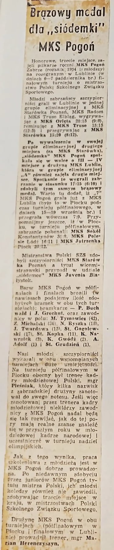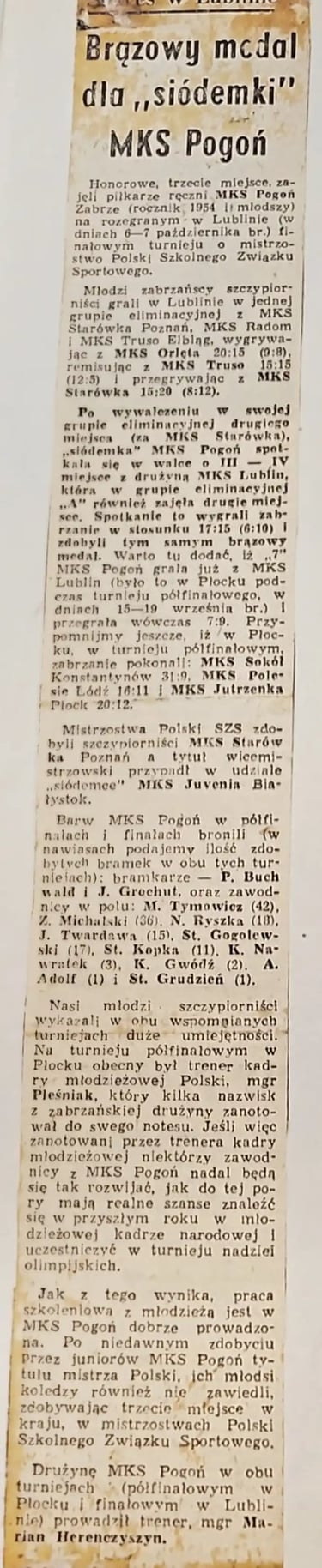 1971 brązowy medal mistrzostw Polski Juniorów Młodszych MKS "Pogoń" Zabrze