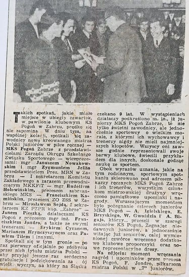 W 1971 roku byłem zawodnikiem drużyn młodzieżowych KS „Pogoń” Zabrze, które zdobyły: