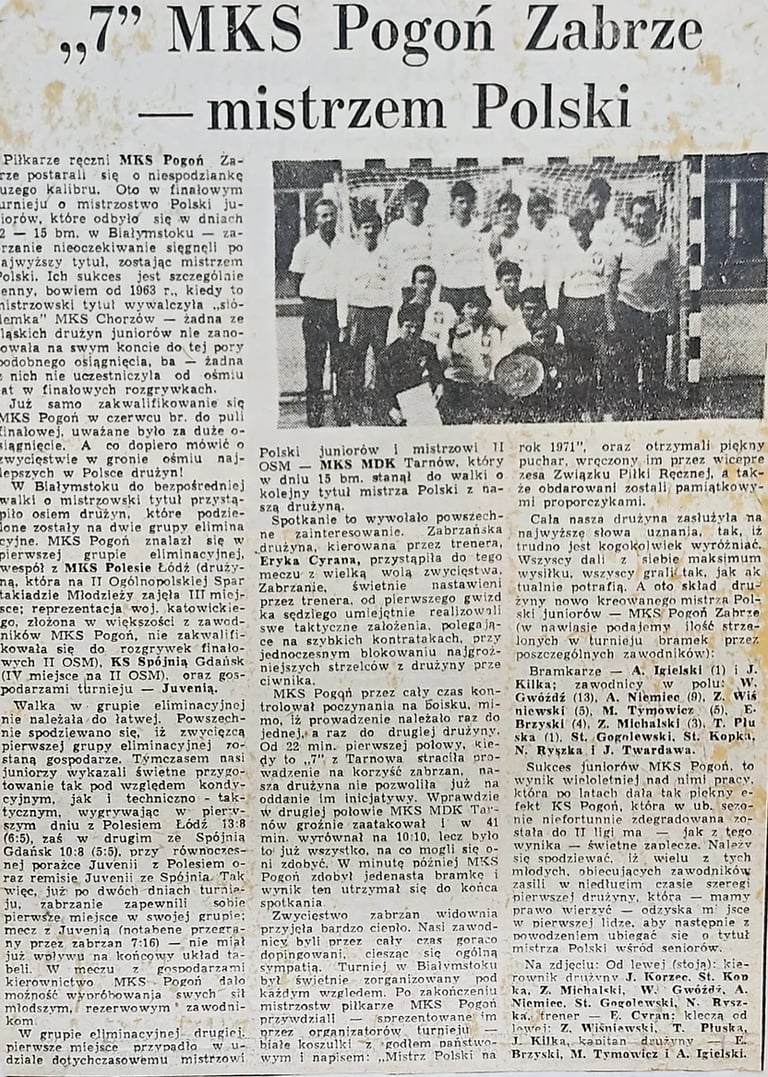 1971 Mistrz Polski Juniorów Starszych MKS "Pogoń" Zabrze