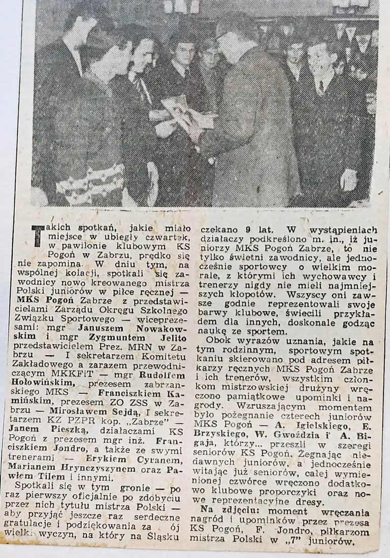 Pierwszy tytuł mistrza Polski Juniorow MKS "Pogoń" Zabrze 1971